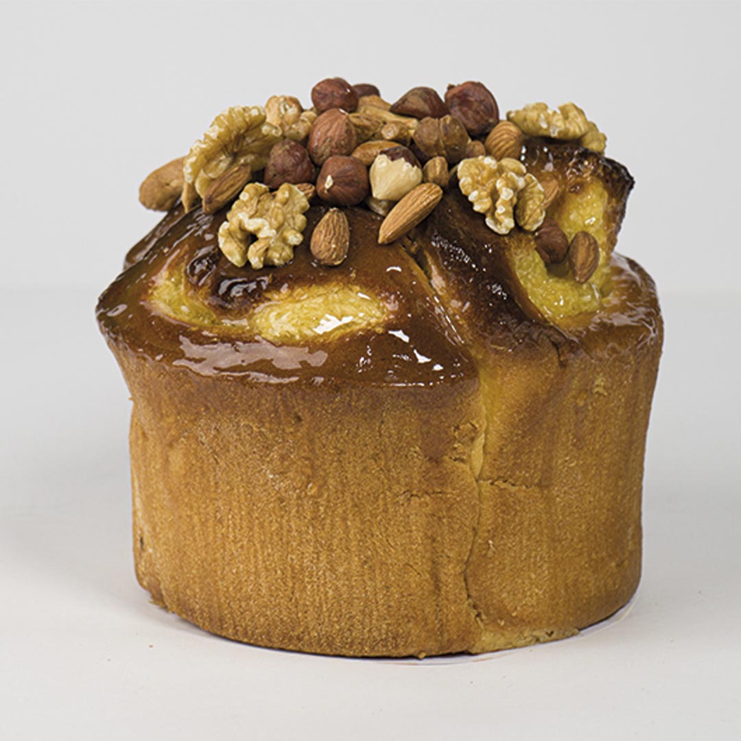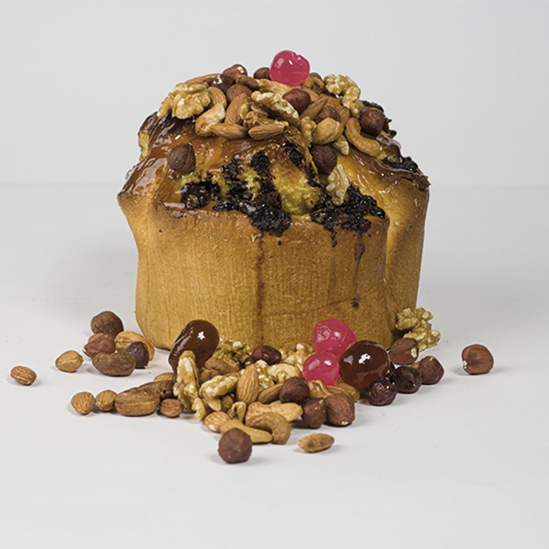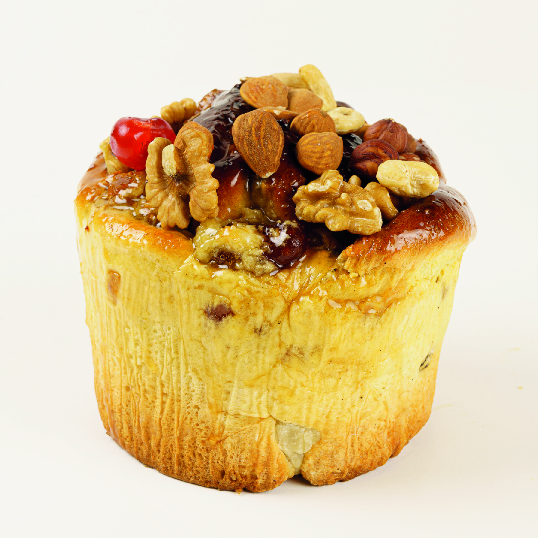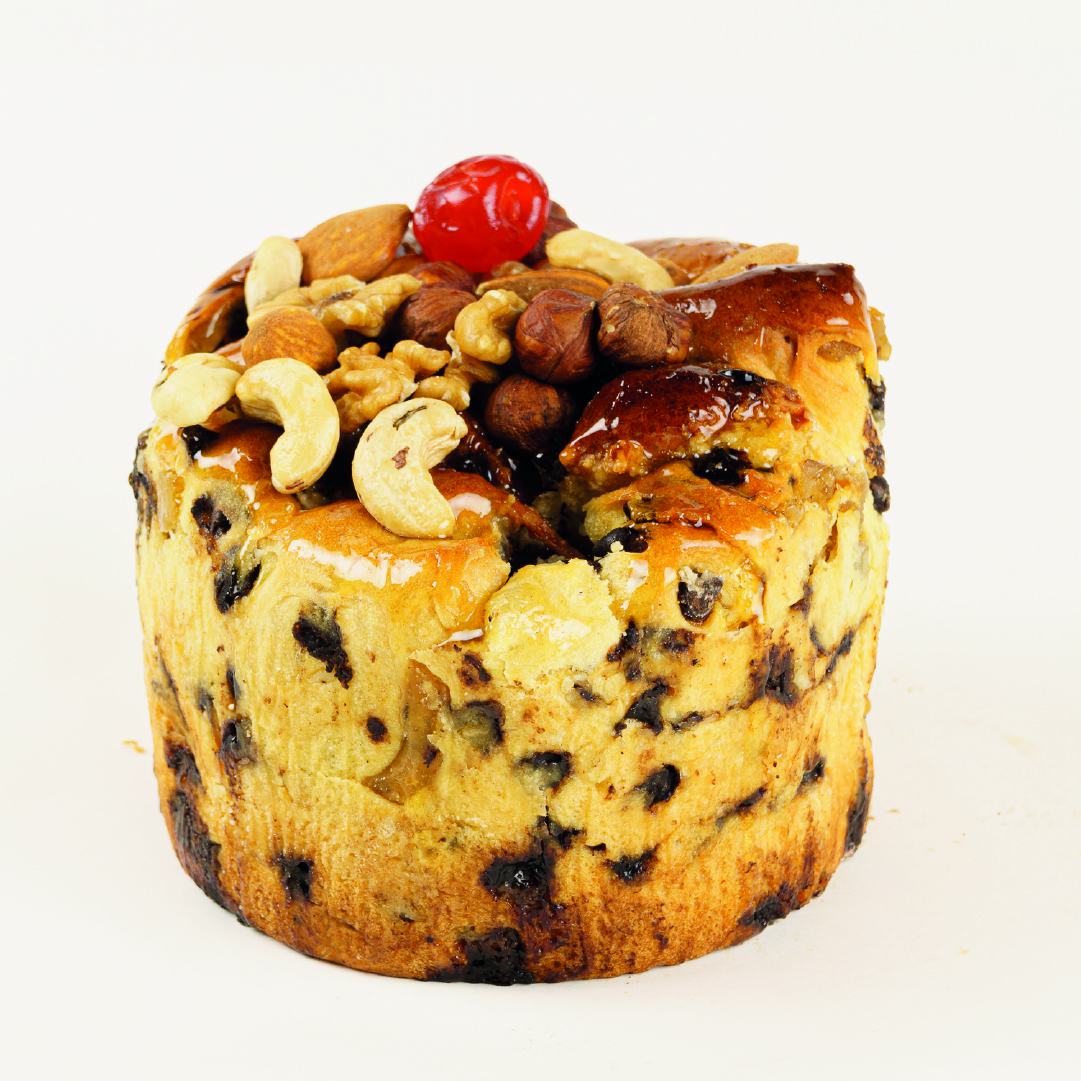 90% frutos secos, y 10 % frutas confitadas y pasas de uva.